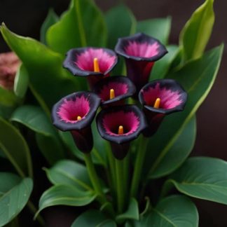 Уход: Каллы нуждаются в регулярном поливе, особенно в период активного роста и цветения. Подкормку следует проводить комплексными удобрениями для цветущих растений каждые 2–3 недели. После цветения полив следует постепенно сокращать, а клубневые каллы можно выкопать и хранить в сухом прохладном месте до следующей весны. Зимой комнатные каллы нуждаются в периоде покоя, поэтому полив следует значительно сократить и перенести растение в более прохладное место. Важно следить за влажностью воздуха, особенно в отапливаемых помещениях, и при необходимости опрыскивать листья водой.